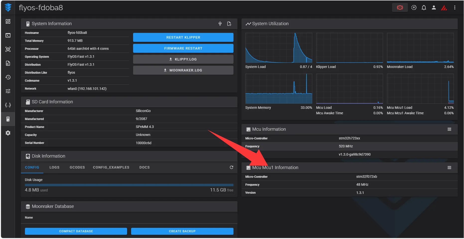 Mcu Information下方找到Version字段 - 核对版本一致性:确认所有 MCU 的固件版本与上位机 Klipper 版本匹配