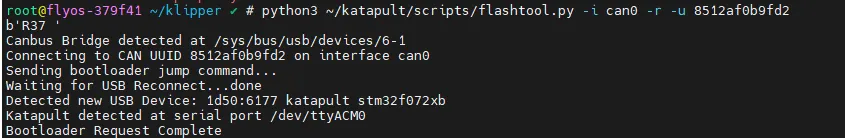 python3 ~/katapult/scripts/flashtool.py -i can0 -r -u <你的主板ID>