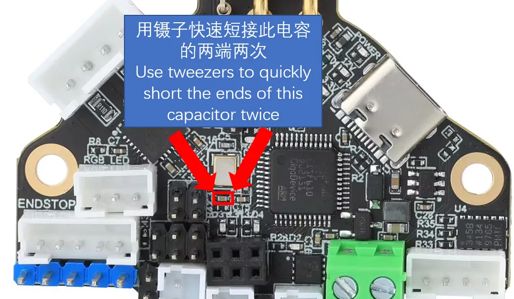 Application: CanBoot并且对应的固件灯会闪烁。这个时候你需要烧录Klipper固件,否则无法连接!!! -