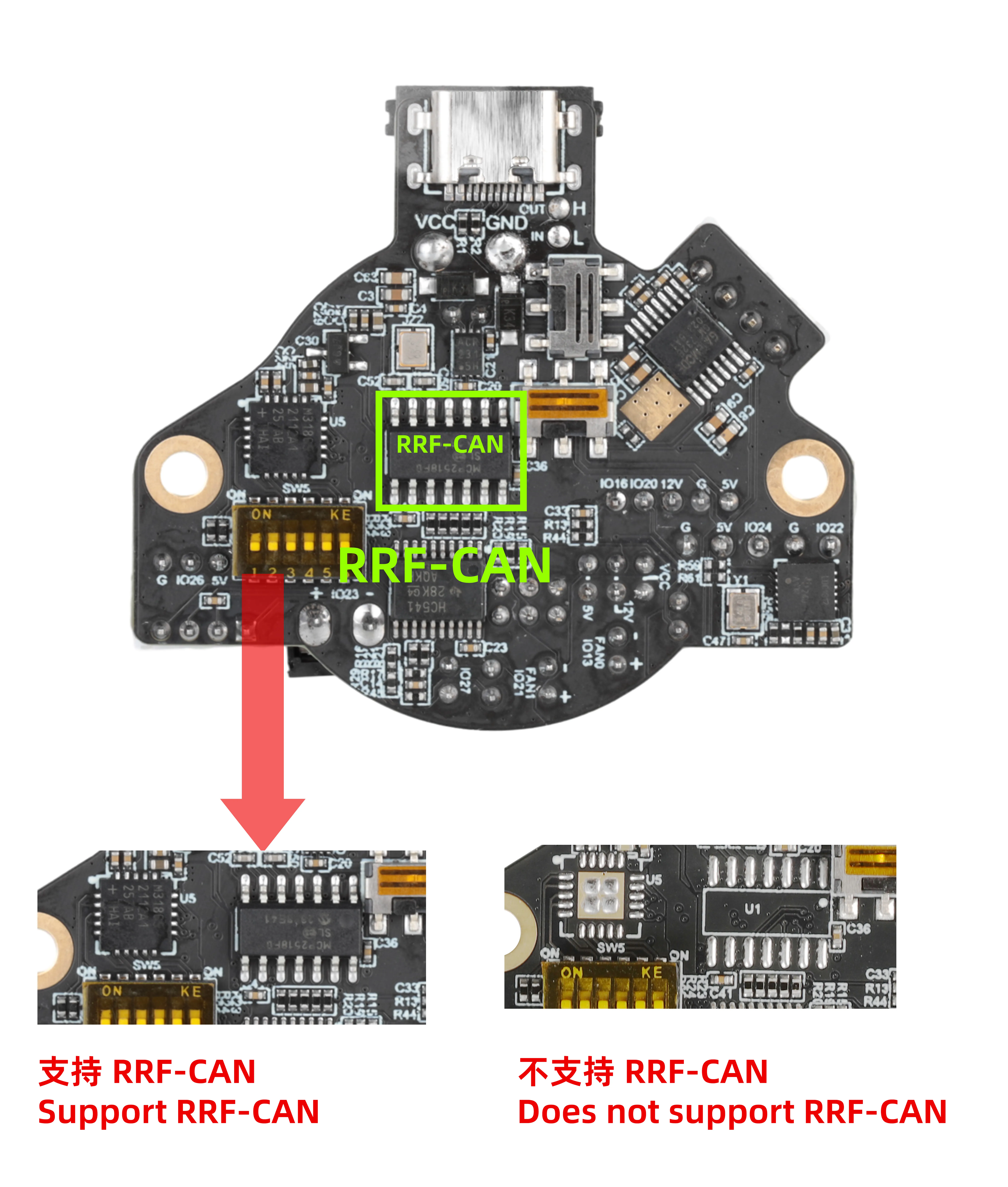 SHT36 V3 的部分套餐支持RRF-CAN。您可以通过观察工具板上是否有RRF-CAN芯片来判断是否支持(实物位置请参考下图)。