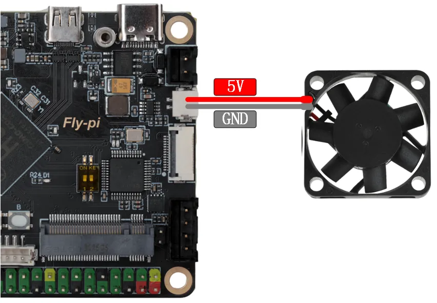 - Pi-V2 has an onboard 5V controllable interface used for main controller heat dissipation. The wiring method is shown in the figure below.