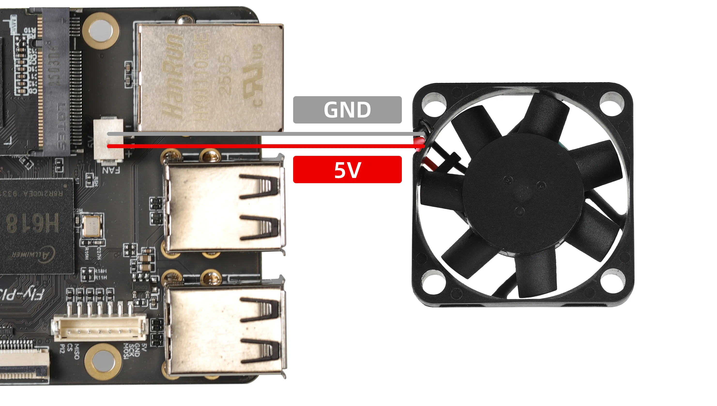 - Interface Characteristics: This 5V fan interface is designed as "always on". This means that once the main control board is powered, the interface continuously outputs 5V voltage, and the fan will keep running constantly.