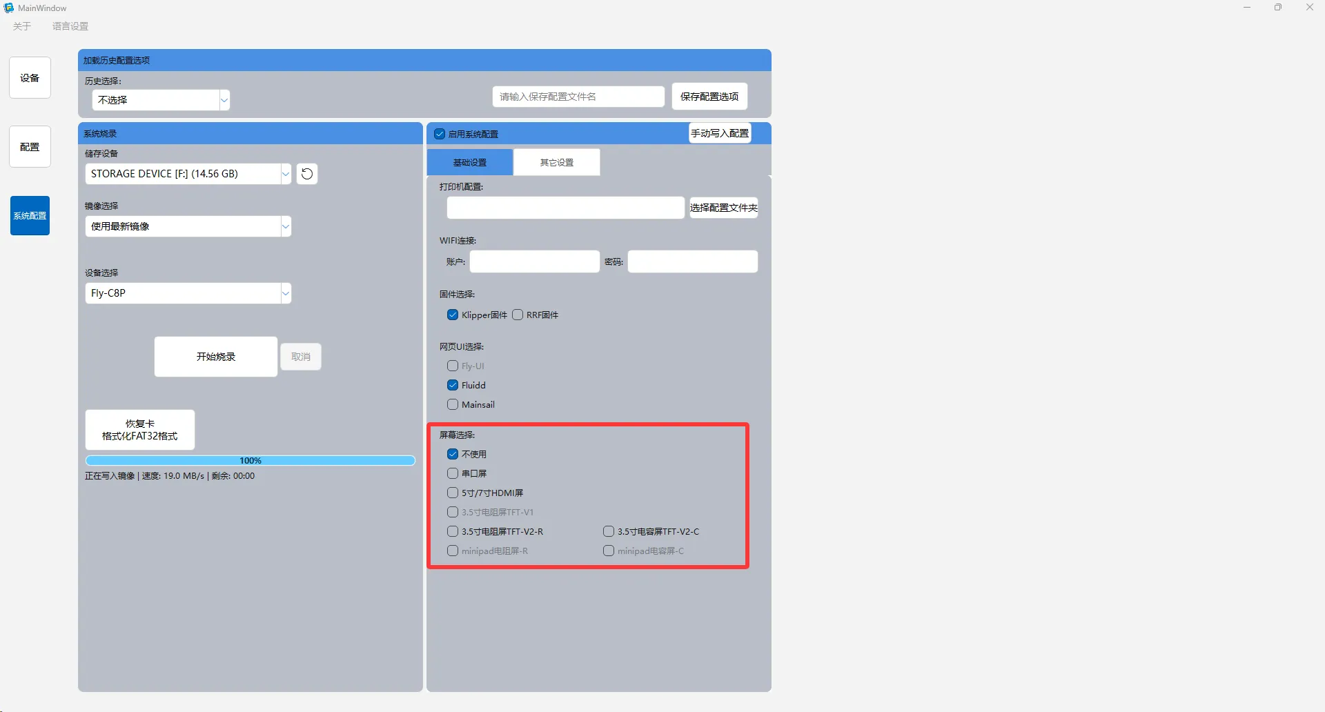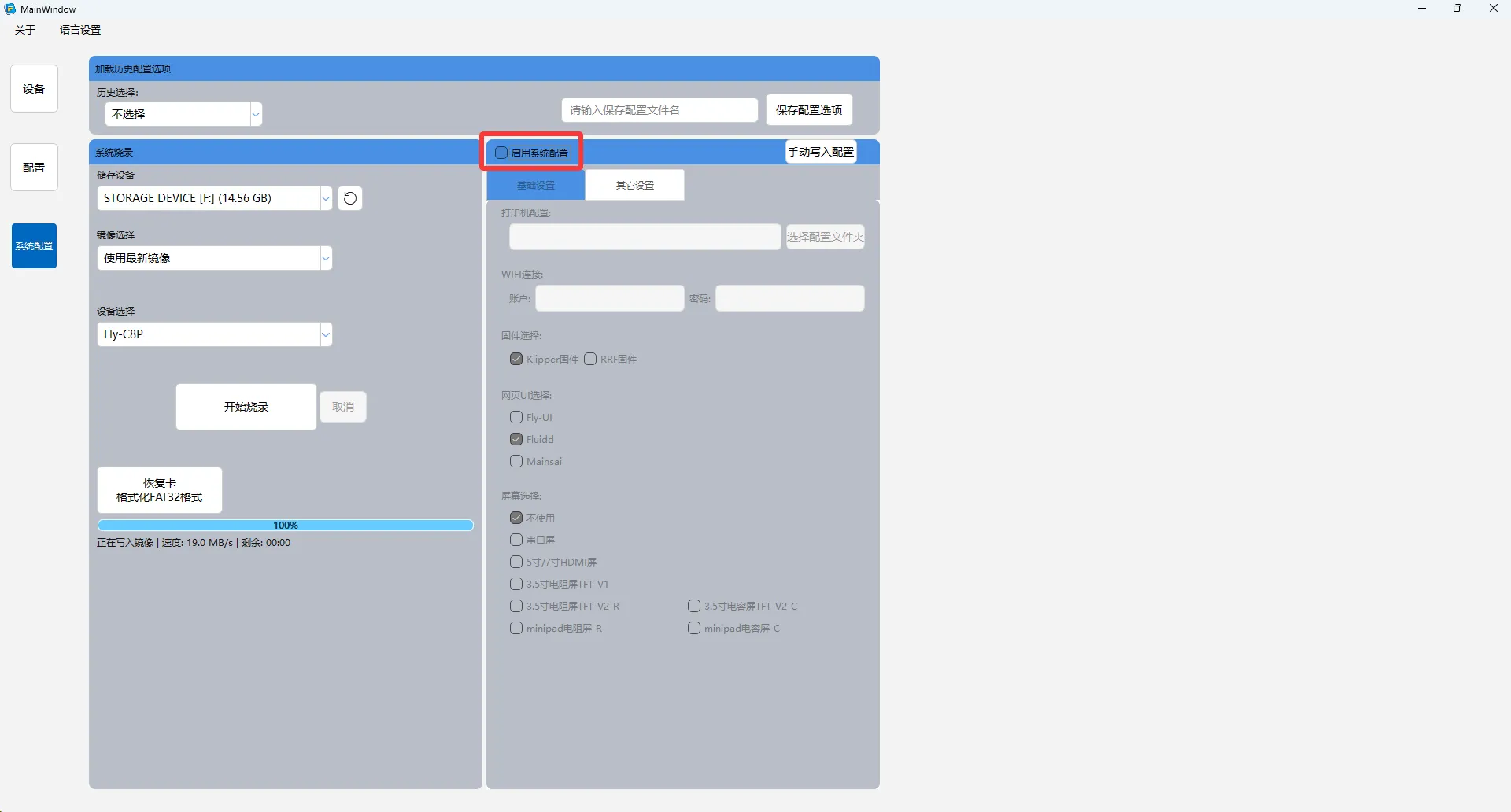 启动软件后,从左侧菜单栏选择 系统配置 选项,进入系统烧录界面。