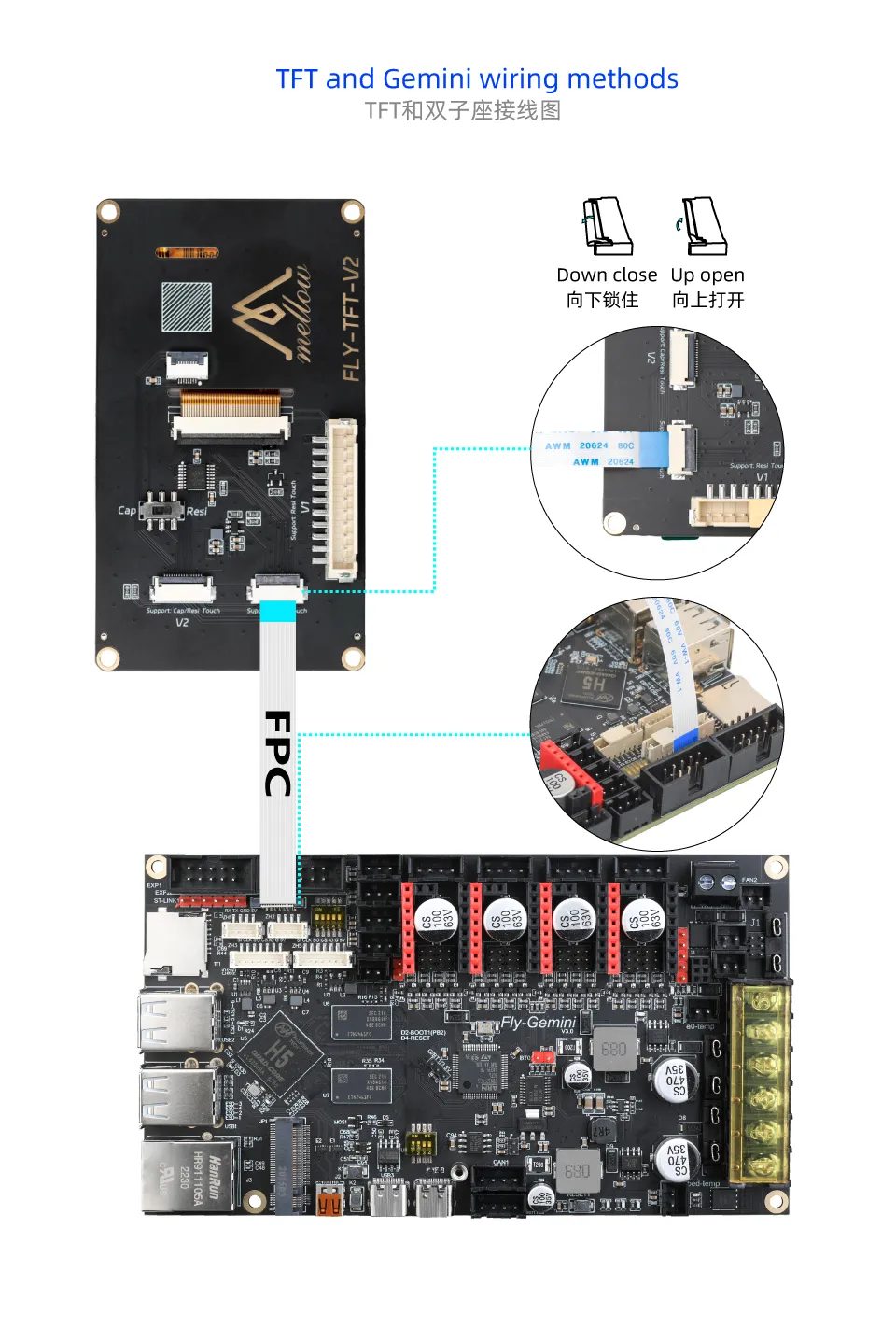 ![]() | Câblage de l'écran résistif FLY-Gemini TFT V2 ![]() |