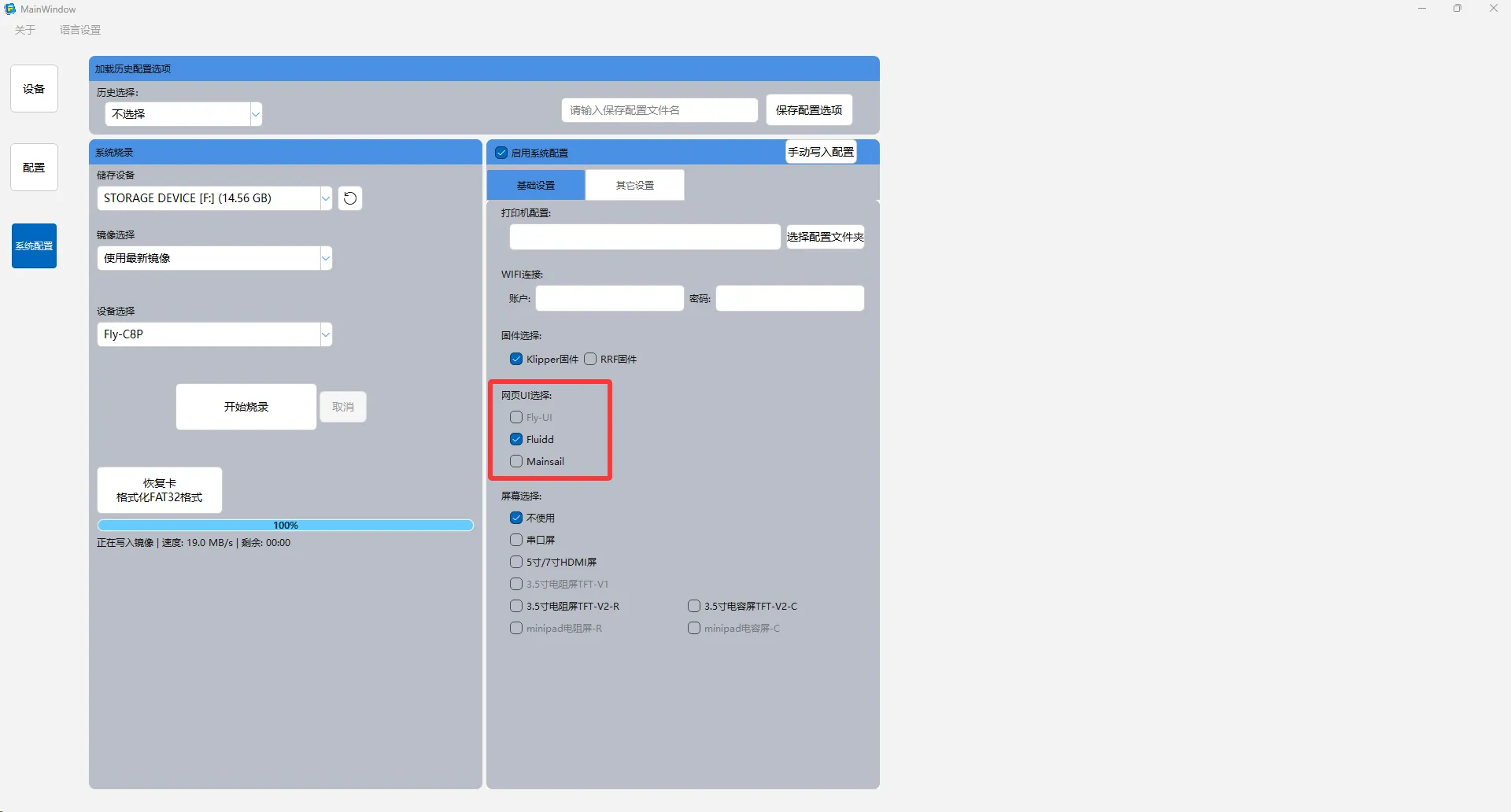操作提示:完成所有配置项的选择和修改后,请务必点击手动写入配置 按钮,以确保所有设置正确保存到系统卡中。