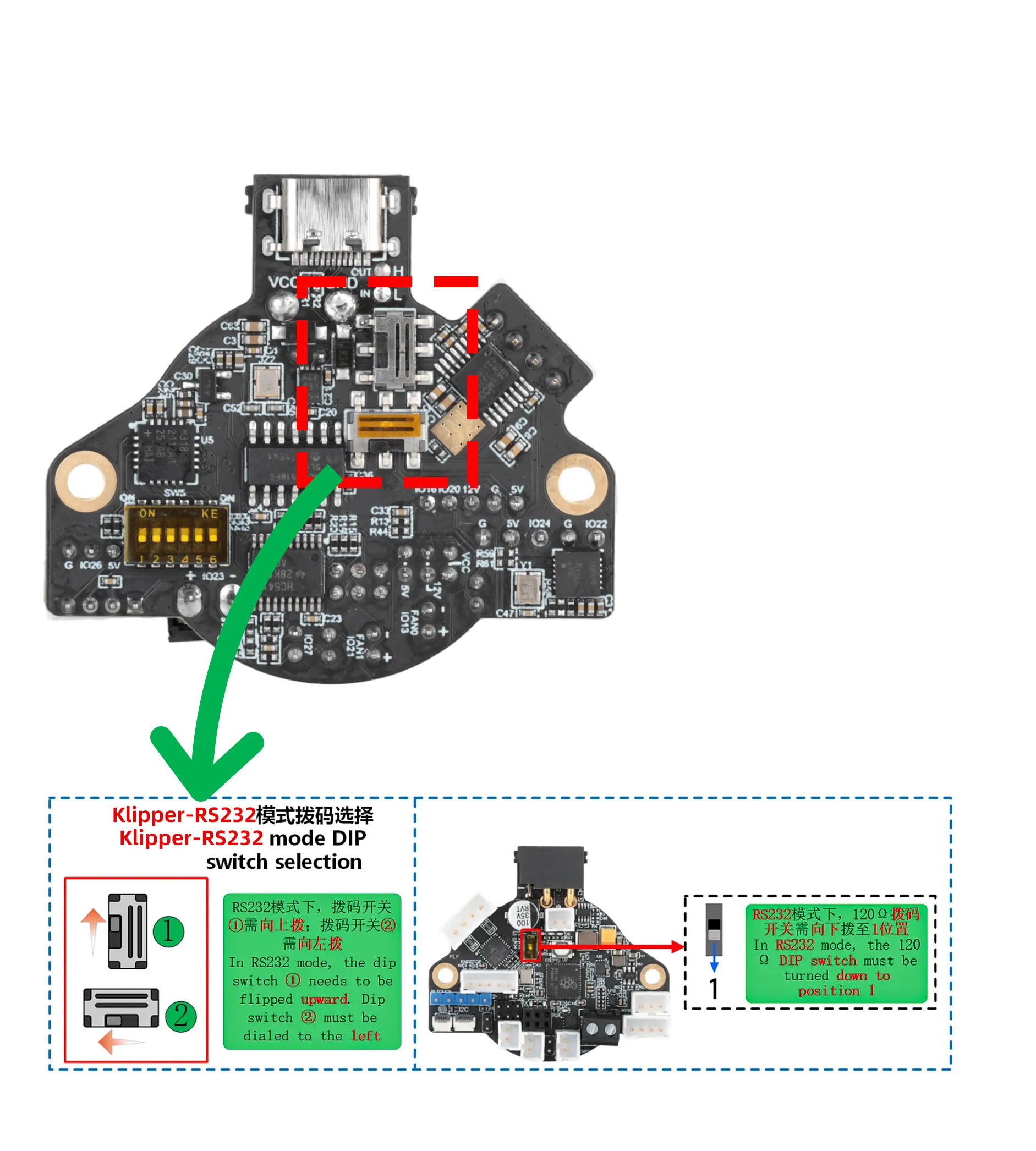 • RS232 모드로 전환하기 전에, Type-C 데이터 케이블을 사용하여 툴 보드에 미리 컴파일된 RS232 펌웨어를 플래싱하세요.