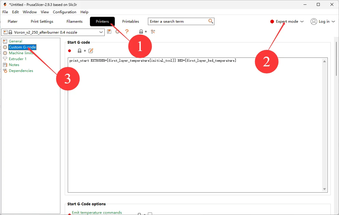 как макрос начала печати, настройте действия перед началом печати - Обратите внимание, что имя макроса может быть пользовательским, достаточно просто сослаться на него в коде начала слайсинга