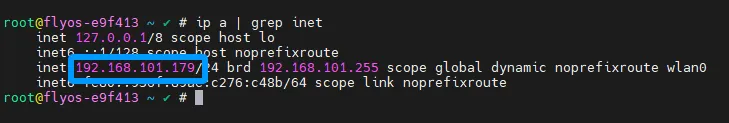 Enter键,在返回内容中找到与你路由器同段的IP即可访问ip a | grep inet