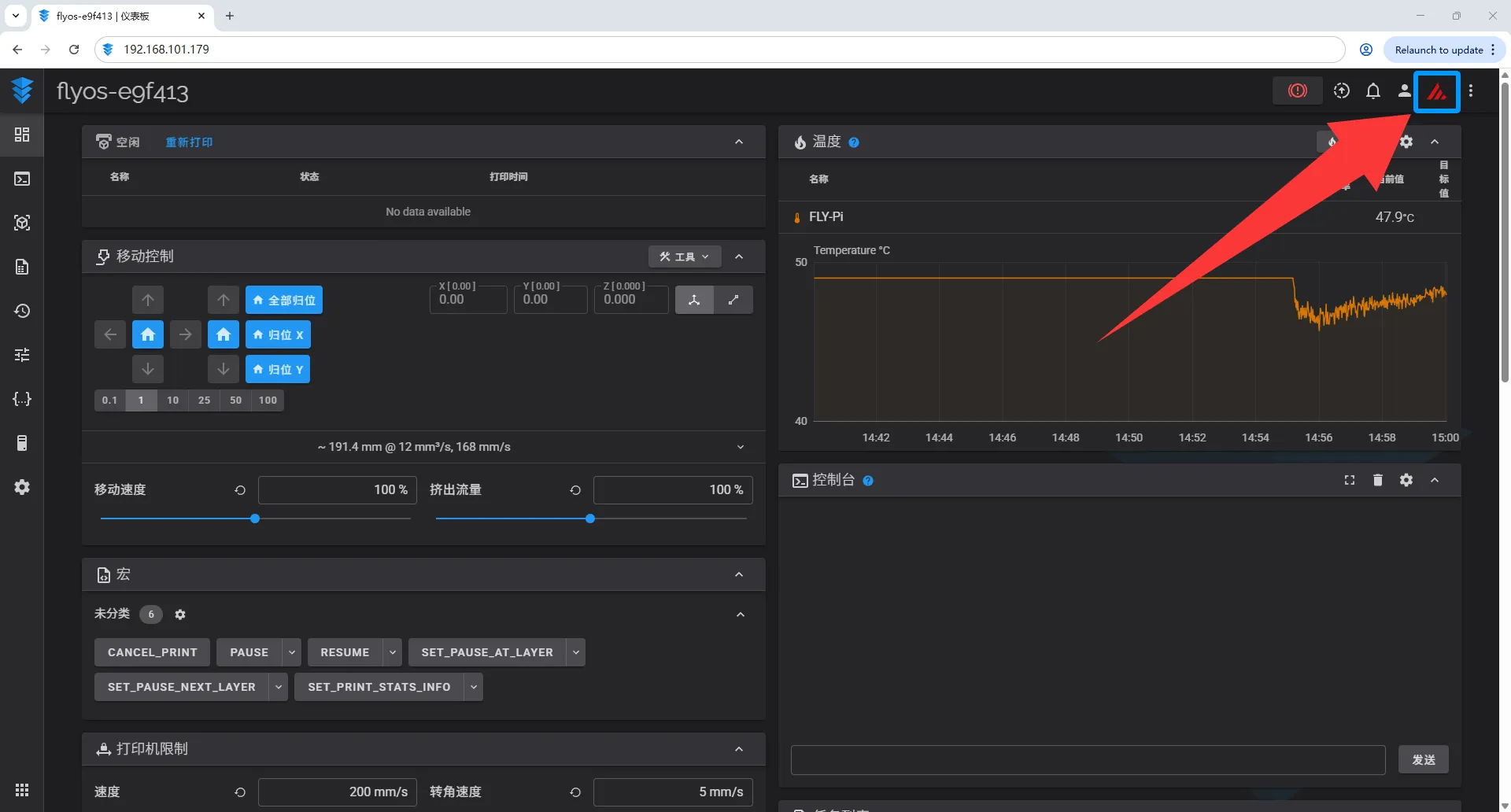 IP,按Enter键,即可进入fluidd/mainsail的WEB控制台